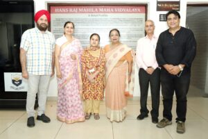 Komal, student of B.Sc. IT Sem 6 of Hans Raj Mahila Maha Vidyalaya bagged 1st position in University. She scored 1934 marks out of 2300. Principal Prof. Dr. (Mrs.) Ajay Sareen congratulated Head of Department Dr. Sangeeta Arora and other faculty members.